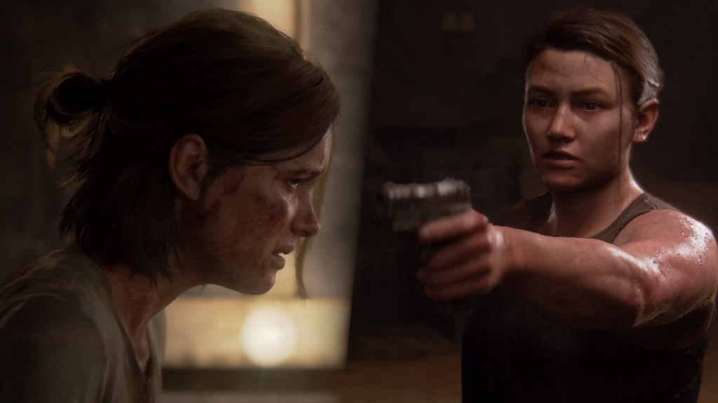 We cut to Ellie who is fighting the slavers. She was incredibly wounded when she finally found Abby who had been tied to a pole. Due to the mandatory training WLF ordered their soldiers to follow Abby had quite the muscular body type throughout the game, but now in Santa Barbara she was underweight and had lost her muscle mass. Ellie, still seeking revenge, dared Abby to fight her. She refused, she was far too weak to fight Ellie, and so; Ellie threatened to kill Lev by positioning her knife by his neck. Abby, who would do anything to protect Lev, gave in and agreed to fight Ellie. However, from Abby’s perspective she was agreeing to fight a woman she met a year ago when she avenged her father. She never knew Ellie’s name and was never made aware as to why this woman was targeting her.